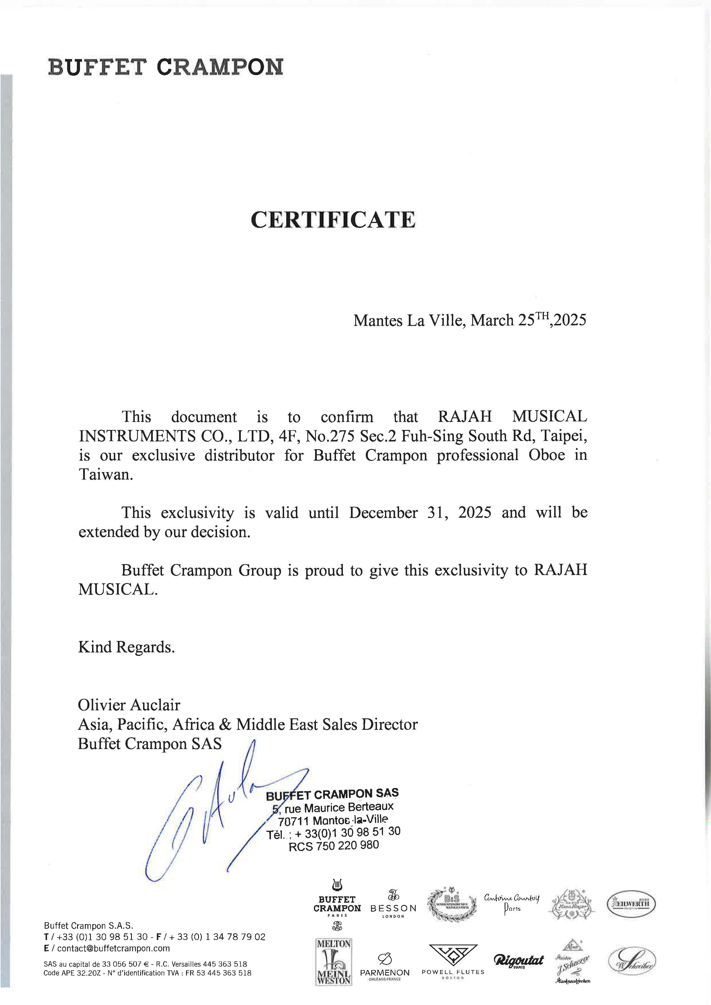 擁有200年悠久歷史的法國Buffet Crampon樂器製造公司